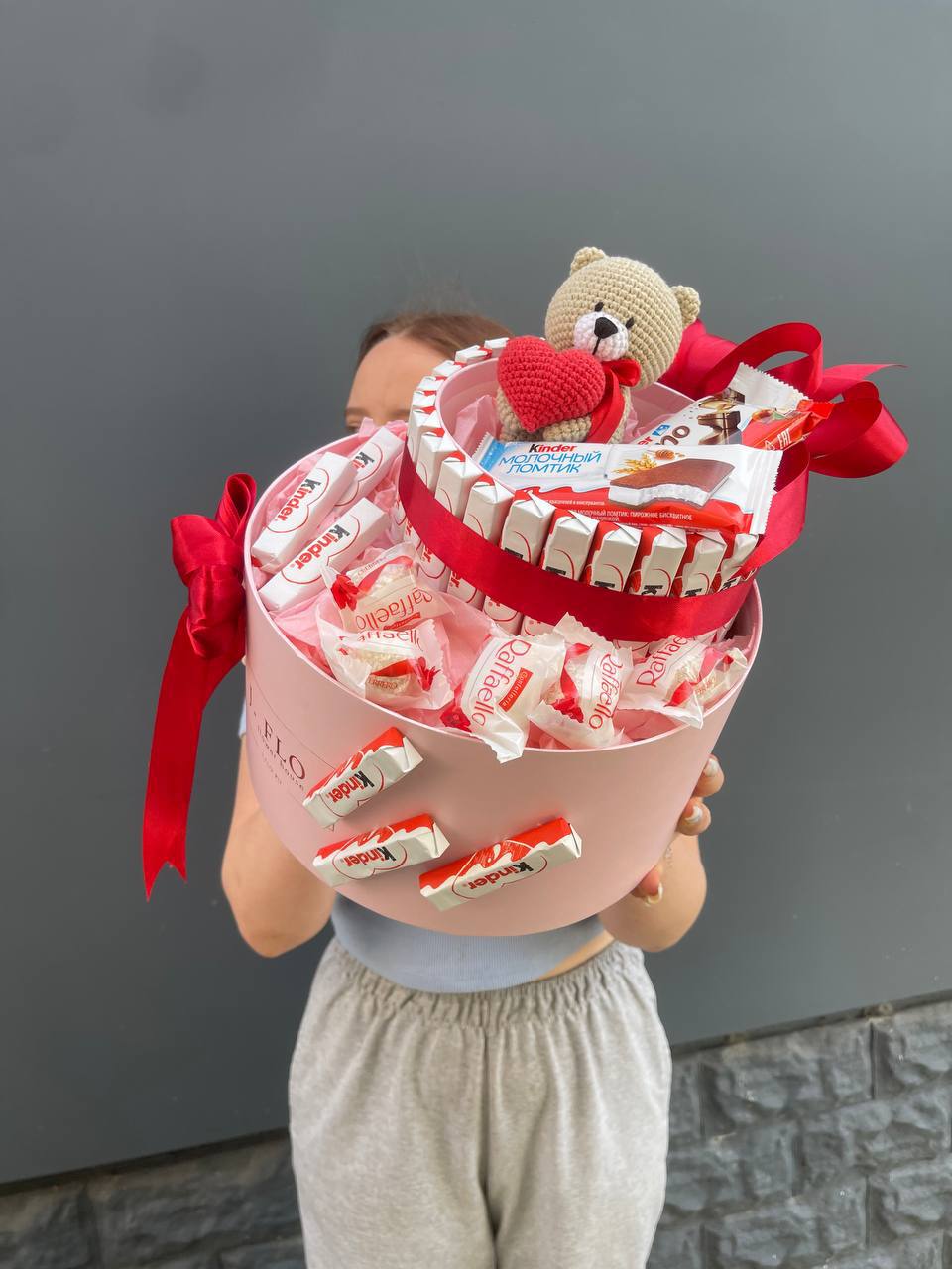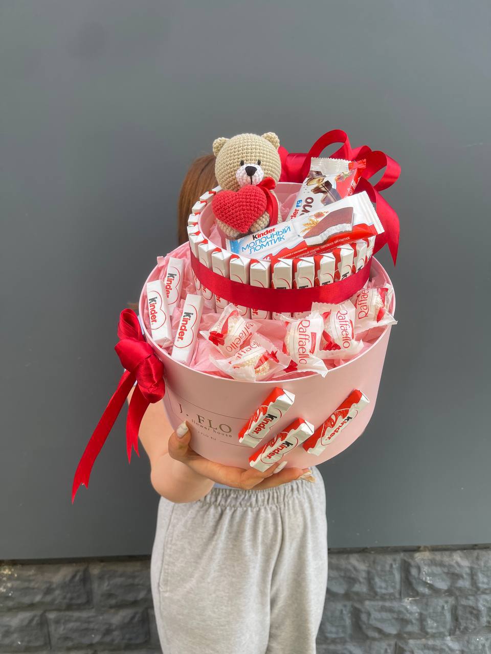 Одиннадцать французских роз выстроены в округлую композицию с веточками эвкалипта. Бутоны крупные и плотные, держат форму и наполняют пространство свежим присутствием.